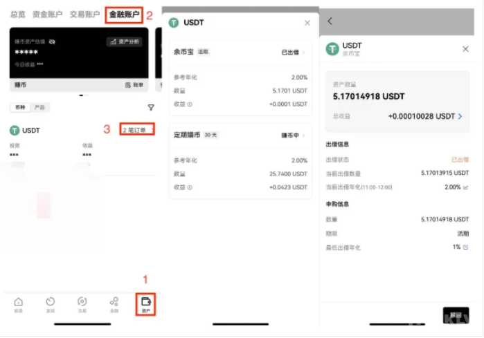 1、登录欧易APP,点击首页【赚币】按钮,或者【金融】栏,并点击赚币页面右上角按钮,选择【DeFi】;