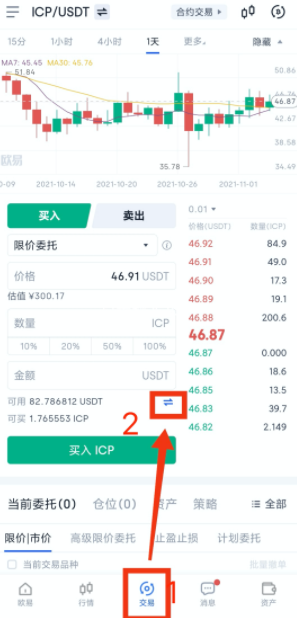 1、打开欧易okx,进入软件首页进行资金划转,点击【交易】页面内的划转按钮,选择【币种】,将资产从【资金账户】划转到【交易账户】,填写【数量】,点击【确定】。若进行USDT保证金合约,划转币种为USDT;若进行币本位保证金合约,就划转相应的币种。