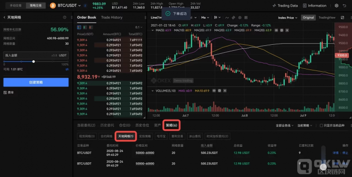 3)下单成功后,可在【策略】-【天地网格】中查看当前策略。