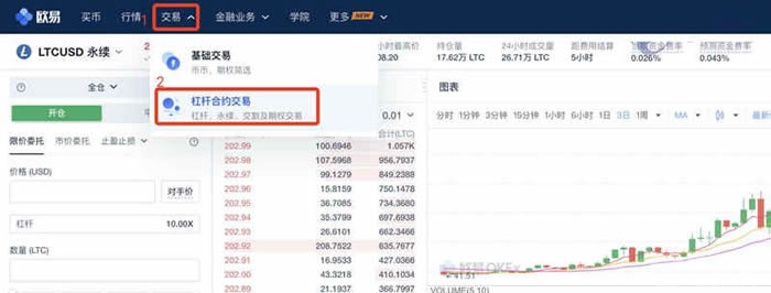 1. 登录OKEX(http://cix1.cn/Qnt0)账号后,点击【交易】,选择【杠杆合约交易】。