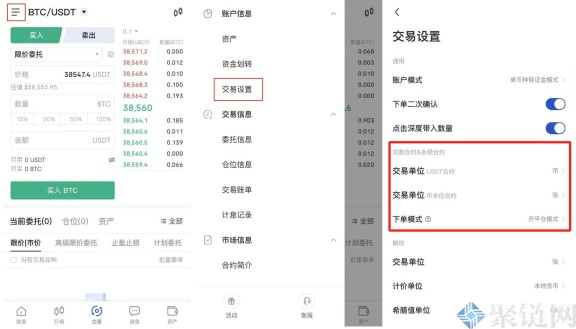 2、您可继续进行合约设置,个性化选择交易单位,下单模式。