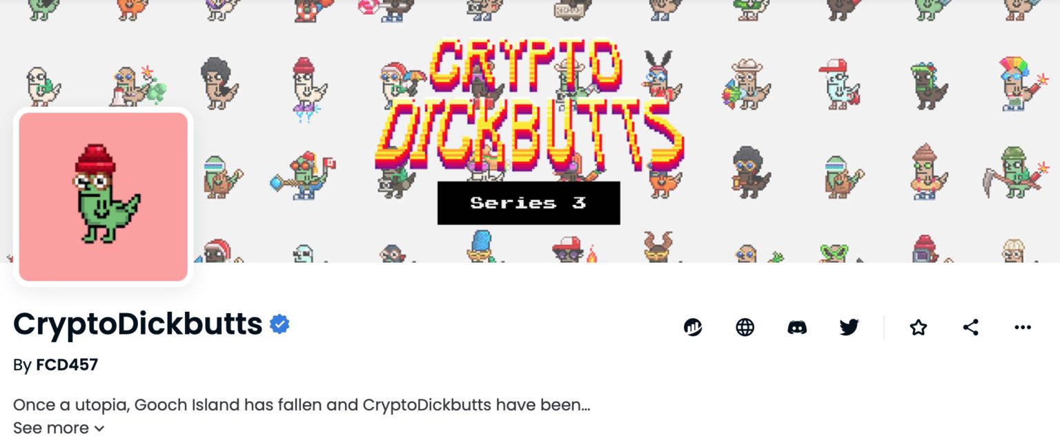 目前尚不清楚近期交易突然爆涨的确切原因,但该系列NFT基于meme文化,确实长期在社区中都具有潜在的讨论热情和需求;且虽然该项目没有提供未来发展路线图,但有一个社群自发的CryptoDickbuttDAO在进行管理,其中不少币圈知名人士如:推出音乐元宇宙的DJ Steve Aoki、NFT艺术家Prob Cause和Blondish都名列其中,并在近期分享了Crypto Dickbutts的讯息,或许成为了此次疯潮的导火线。