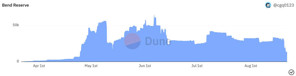 据DuneAnalytics数据显示,BendDAO当前储备总额为13,469枚ETH,较8月19日时的约3.2万枚ETH呈现显著下滑。