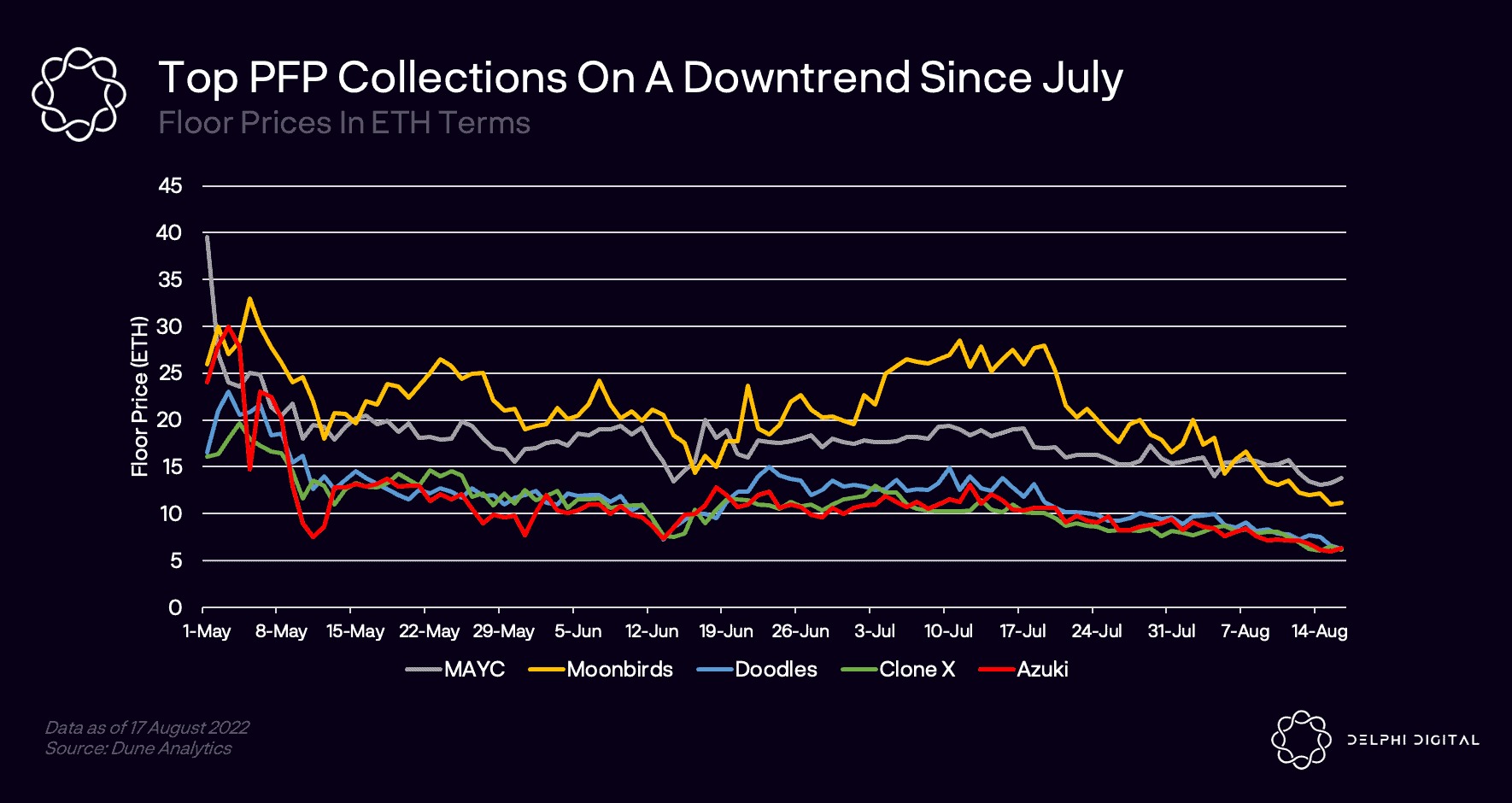 MAYC、Moonbirds、Doodles、CloneX、Azuki地板价从7月开始明显下滑