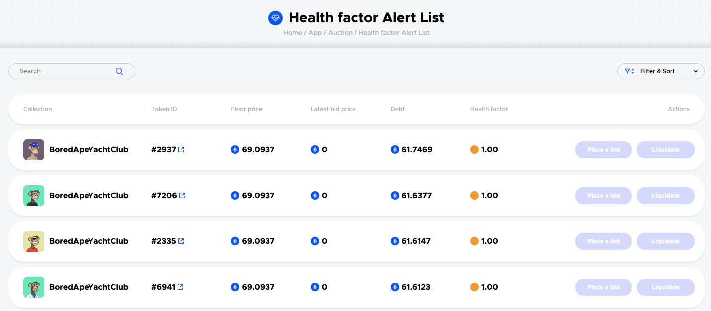 名单中首个进行清算拍卖的BAYC#533最低的出价金额需高于67.002ETH。据系统显示,48小时的拍卖时间过后,出价最高者将能够清算贷款并成为该NFT新的所有者(如果竞标失败,用户的出价将以WETH退回各自的钱包。)