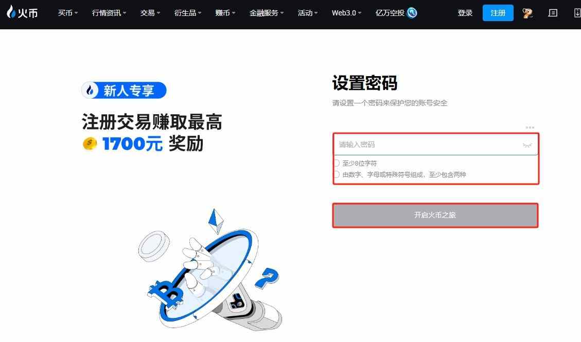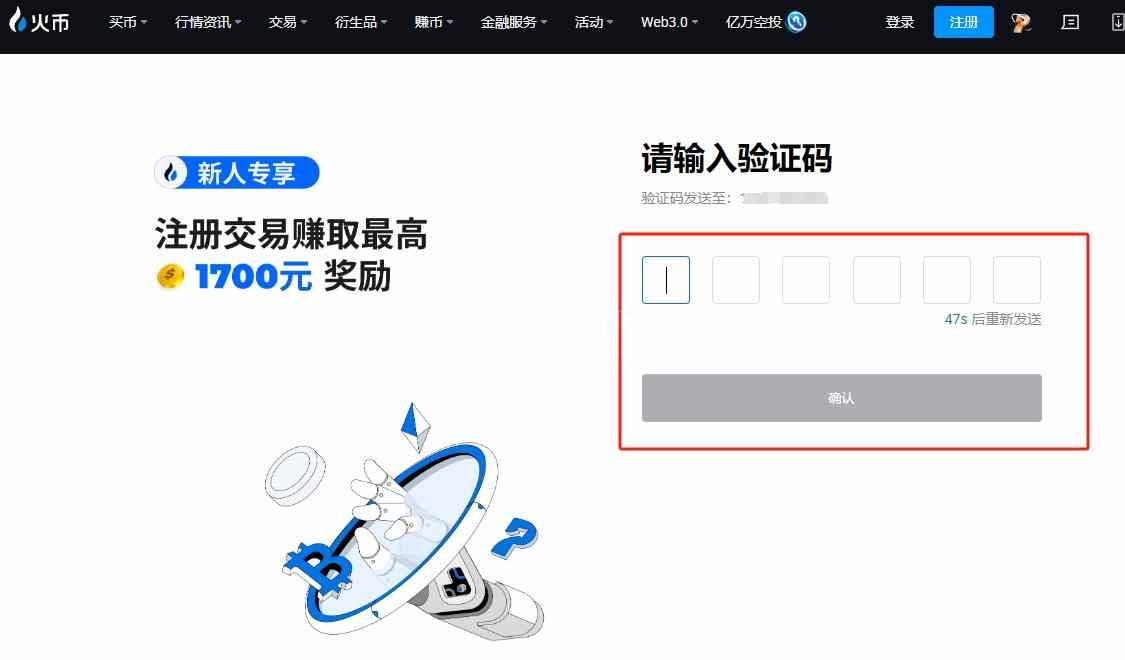 1、打开HTX火币官网(点击注册),输入手机号,点击下一步
