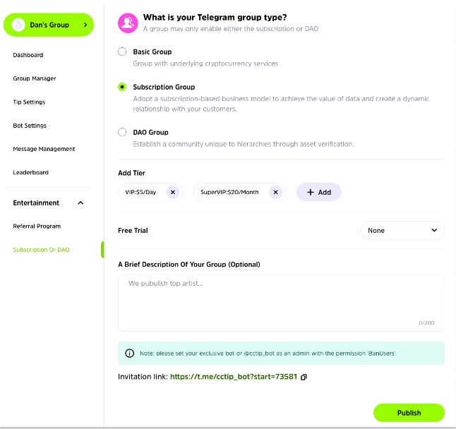 机器人Cwallet的多功能的Crypto Wallet机器人是专为Web3社区设计的。在无需任何技术门槛的情况下,用户可以通过Cwallet机器人免费的开发者API,无需编程技术和过多时间成本,分分钟一键创建自己的专属机器人,自定义机器人昵称及头像。该机器人成功地将钱包属性和社交属性合二为一,除了通过指令轻松交互掌握账户资产实时情况外,还可以发送有趣的红包和空投指令以活跃社群,增强用户和品牌方的粘性。不仅如此,Cwallet更有后台面板来实时监控社群情况,可以清晰地通过数据记录社群增长情况并提供必要的导向性建议。同时,付费订阅可以帮助创作者实现内容变现,资产验证功能则可为项目方筛选精准用户。多种群组管理模式则能为各Crypto社区的发展助力增益,成为提供拉近用户和Web3距离的最佳路径。