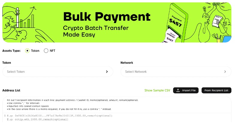 Bulk Payment批量支付:可以一键发送TGate.ion或NFT等,现已支持超50个区块链和逾800种加密资产,可用于自动发薪、DAO费用管理等多个场景;