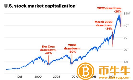 标准普尔和纳斯达克指数都下跌了约30%,加密市场受到的冲击更大(绝对值)。BTC一度跌破4000美元关口,市值缩水超过60%。