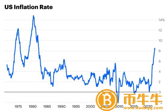 以消费者价格指数(CPI)为例,该指数衡量消费者为天然气、公共事业和食品等商品支付的价格变化——2021年3月至5月,CPI从健康的2.6%飙升至5%。到2022年3月,通胀率将达到8%,为40多年来最高。