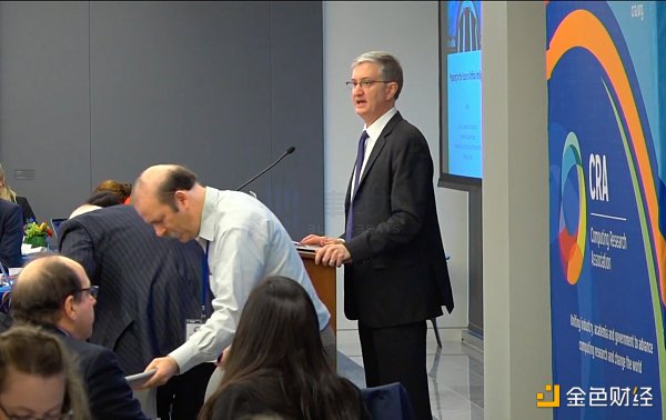 2018 年,Ed Felten 在计算研究协会峰会上发表关于 AI 技术的演讲,图源来自网络