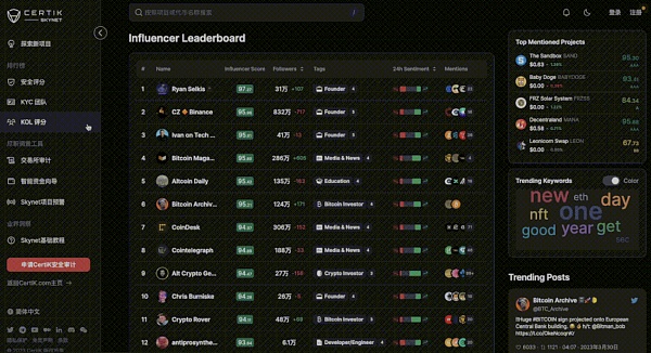 无论是对可操作的链上数据和社交数据进行全面的尽职调查、发现最新完成智能合约审计的项目,还是挖掘最具价值的行业见解和安全最佳实践,Skynet for Community均实现了流程简化并将这些数据全部整合于一个平台供用户浏览。凭借全新设计的界面和强大的功能,Skynet for Community是做出明智决策以及在Web3.0生态系统中促进信任和透明度的终极工具。