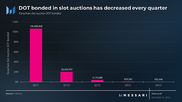 图6:插槽拍卖中绑定的 DOT 每个季度都在减少