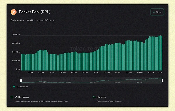 运行节点/迷你矿池时,用户必须将 10%-150% 的抵押 ETH 锁定为 $RPL 作为抵押品(协议保险)。因此,在 Rocket Pool 上质押的 ETH 数量越多,$RPL 市值/价格就越大。进一步坚实了代币经济学。