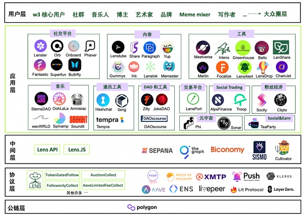 基于 Lens 标准构建的社交应用,能够实现共建、共创以及共享用户群,共同发展生态体系。