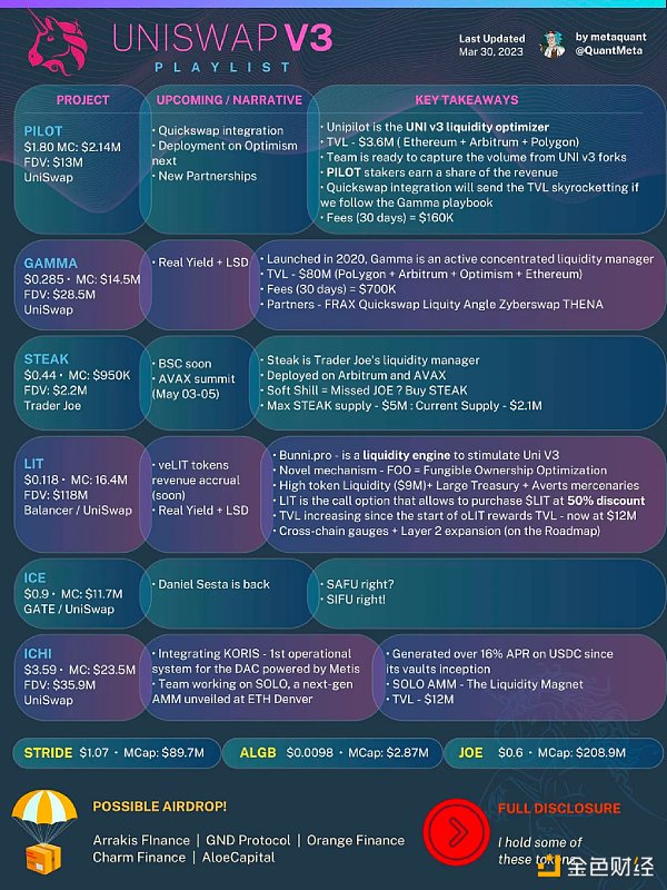 Uniswap v3 代码专利到期对于 Uniswap v3 代码专利到期这一事,我的思路是看看哪些 DEX 能够利用 Uniswap v3 代码更上一层楼,而不是单纯的 Fork。