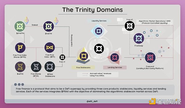 Frax 以 FRAX 为中心建立了整个 "DeFi 三位一体 "的生态系统: