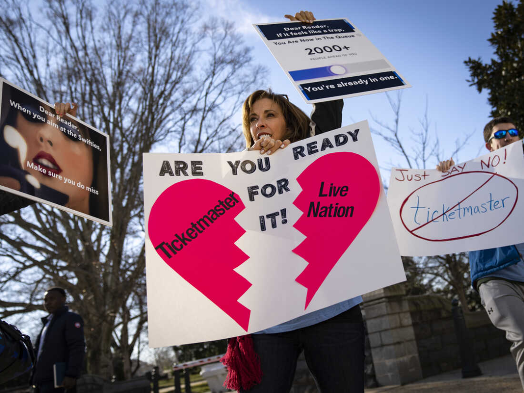 图:Taylor Swift 的粉丝上街抗议,要求分拆 TicketMaster 和 Live Nation