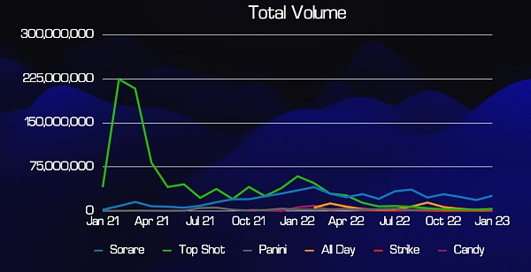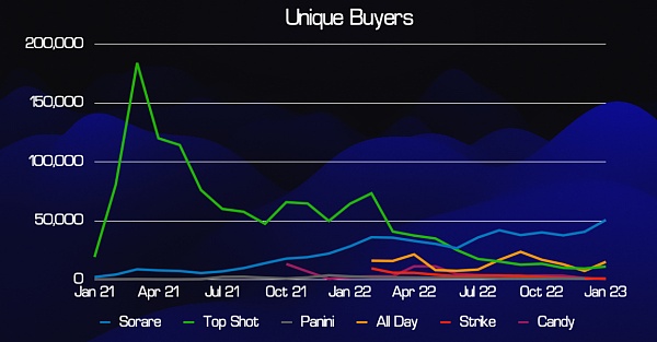 Sorare 是这方面的赢家,因为它是唯一一个在 2022 年实际用户增长的平台(并且最近打破了每月 50,000 名买家的新纪录)。