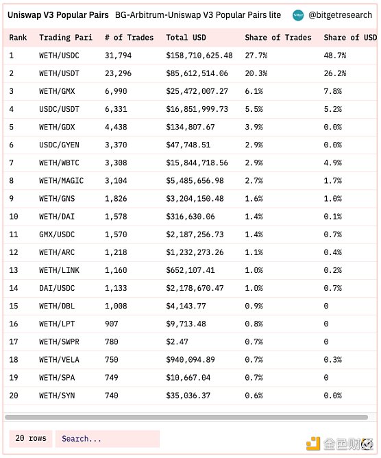 Camelot(Dapp):Arbi 上早期的原生 Dex,近期进行项目 Perpy 打新,xGRAIL 持有人享受 150 万美元的白名单额度,代币 24 小时上涨 20%,交易量 500 万美金,热度较高;