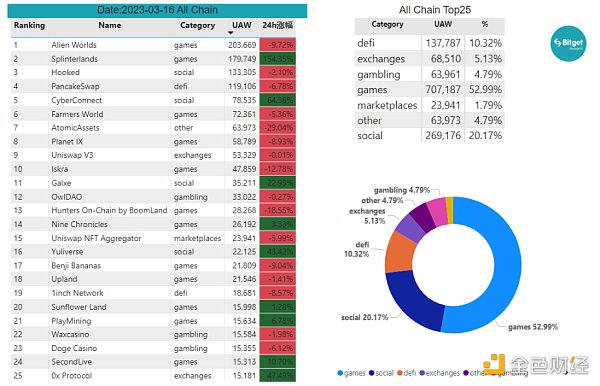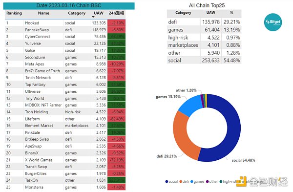 3.热门 DAPP 方面:Galxe(Dapp):Galxe 是一个 Web3 凭证数据网络,通过凭证数据正在构建一个基于 Web3 的去中心化身份系统。 Galxe 为每个钱包用户创建了一个「Galaxy ID」,集成了用户在该平台所获得 、OAT 和链上凭证信息,近期举行 Galxe 社区任务第 2 季,总奖池 15K GAL,为期四周,完成不同任务可获得相应奖励,同时还和 YoMetaverse、1inch 等联合推出了活动,日常运营非常频繁;