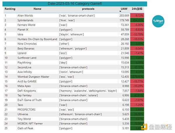 Mobox(Dapp):(https://www.bitget.com/en/spot/MBOXUSDT_SPBL?type=spot),BNB 链上的头部链游项目,近期的运营活动较多:$MBOX 代币回购计划,与 Trush Wallet 合作活动预热等,代币 $MBOX 回购计划,代币主要跟随 BTC 波动,24 小时交易额达 801 万美金,已在 Bitget 上线交易;