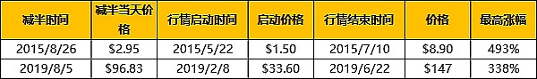 减半/产会给市场带来至少1倍的预期,即开始前的炒作,必然会带动市场情绪,散户进入,价格上涨。