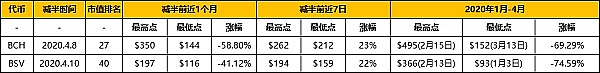 (1)2020年4月8日和4月10日,BCH和BSV完成迄今为止的首次减产,区块奖励从12.5 个 BCH 变成 6.25 个 BCH。