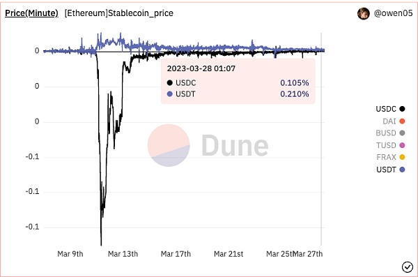 自从 3 月 11 日 USDC 发生脱锚事件后,USDT 相对 USDC 始终存在溢价,USDT-USDC 作为主网交易量最大的稳定币池,在大多数 DEX 协议中偏离了最有效的报价区间,DODO 上一周经过流动性的repeg 调整后,使得报价区间更有效,取得了明显的交易量上涨。主网 最近 24h 交易量仅次于Uniswap,Curve 排名第三。