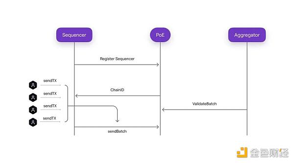 二、Polygon zkEVM 执行流程接下来我们以一个简单的交易被确认流程来看看 Polygon zkEVM是怎么工作的,从而对整体协议有一个具体的理解,它的整个过程可以主要分为三个步骤: