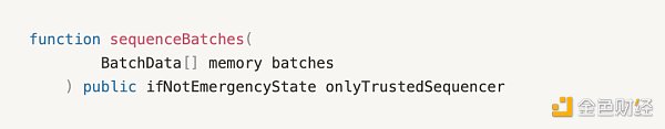 2) Sequencer 会将多笔交易打包进一个Batch里(目前是一个Batch里只包含一个交易) 然后在收集到多个Batches之后, 通过L1上的 PolygonZKEvm.sol的SequenceBatch()函数将多个Batches一起送到L1的交易Calldata上。