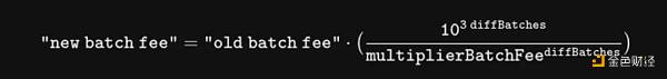 于是当有Batches迟到的时候,会用以下公式来调整BatchFee: