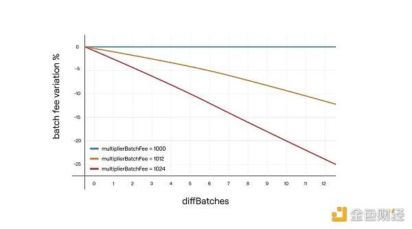 同理假如Batches提前了也会触发相应的batchFee调整机制:DiffBatches 表示提前验证状态的Batches的数量。