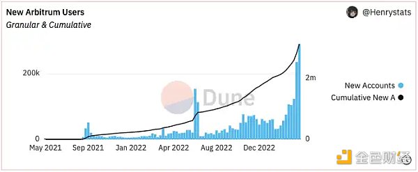 (数据来源:https://dune.com/Henrystats/arbitrum-metrics)