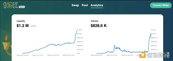 目前, 10 Kswap 的流动性约为 120 w 美金,日交易量约为 82.86 w 美金(2023.3.26 ),仍然处于早期阶段。