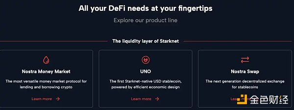 Nostra 旨在构建 StarkNet 的流动性层,由三个产品组成:Nostra 货币市场、UNO、Nostra Swap: