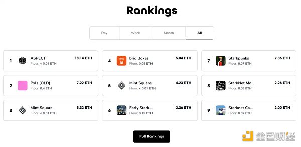 Aspect 是 StarkNet 生态中首个 交易平台,于 2022 年 8 月推出,用户可以在该平台上铸造、上传和买卖 。目前其交易量仍然较小,处于早期阶段。