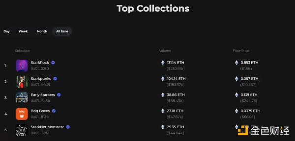 作为 Layer 2 四大天王中估值最高(母公司 StarWare 估值 80 亿美金)的项目,StarkNet 生态项目的含金量不用多说,从近期的交易活跃度就可见一斑。