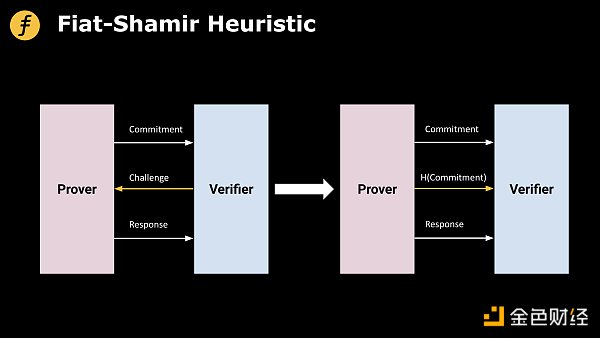 Fiat-Shamir 启发式(Heuristic)事实上,Fiat-Shamir 启发式(Heuristic)就是利用哈希函数来对前面生成的脚本进行哈希运算,从而得到一个值,用这个值来充当挑战值。