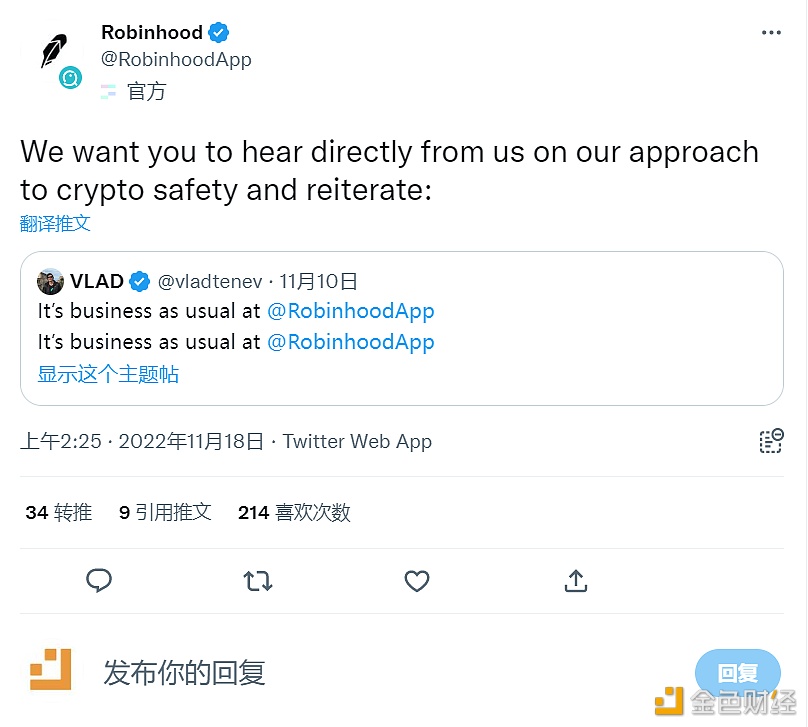 11月18日消息,据官方推特消息,股票和加密货币交易平台Robinhood发布声明称:“我们不借出加密货币或对其进行杠杆操作。我们客户的资产与任何公司活动完全隔离。加密货币是我们业务的一部分。我们是一家美国上市公司,这意味着我们需要每季度报告我们的业务状况和财务状况。我们的资产负债表强劲,没有债务且拥有60亿美元现金。我们有多个交易场所,定期进行审计,并有强大的风险控制,以管理不同的情况。已结算的加密货币由我们保管,而不是由任何第三方保管。客户的加密货币都保存在冷钱包中,有些存储在热存储中以支持日常操作。加密存款和取款照常进行。转移通常需要几分钟时间,但如果被标记为需要进行人工风险审查,则最多可能需要24小时。我们有适当的限制来保护我们的客户和公司的资金。我们为用户账户中未经授权的活动所造成的直接损失提供100%的赔偿。”