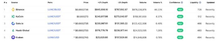 但目前绝大多数LUNC交易都发生在Binance、Kucoin和Gate.io等中心化交易所。这意味着最终也只有一小部分LUNC可能会被烧毁;虽然LUNC社区的许多成员已经请求像Binance这样的大交易所也实施同样的措施,但目前这些CEX尚未正式回应,是否愿意如实配合还是未知数。