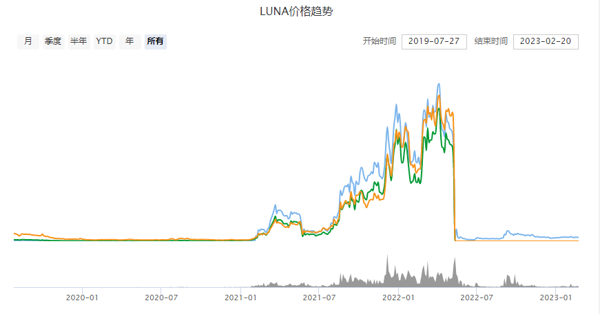该价格走势图从Luna币发行以来截止至2023年2月20日。