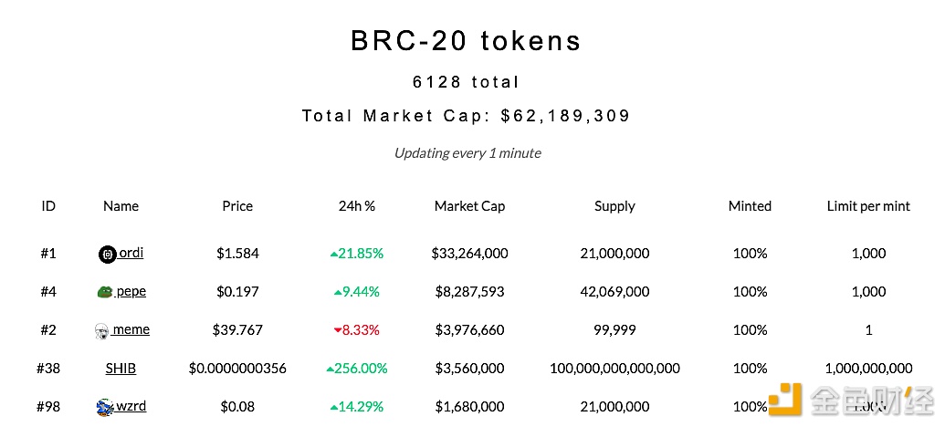 数据显示,比特币铭文代币Ordi已突破1.5美元,暂报1.584美元,24小时涨幅21.85 %,当前总市值已达3326.4万美元。此外,BRC-20相关代币目前约为6128种,总市值为62,189,309美元。 据悉,BRC-20协议是直接写到比特币网络上,以聪为载体,用Ordinal Inscriptions的JSON数据部署、铸造和转移代币。Ordi是第一个比特币铭文代币,总供应量为2100万枚。